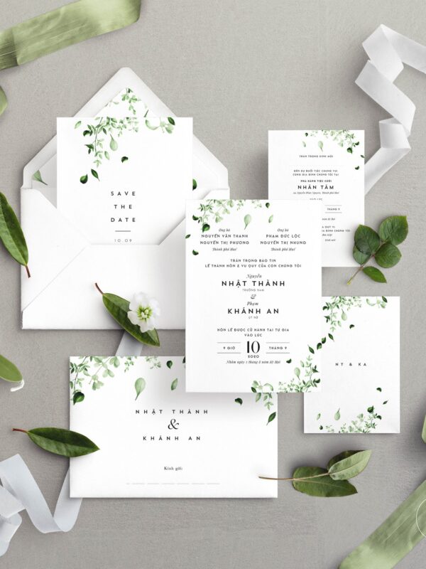 Thiệp cưới Xanh Lá nhẹ nhàng tinh tế