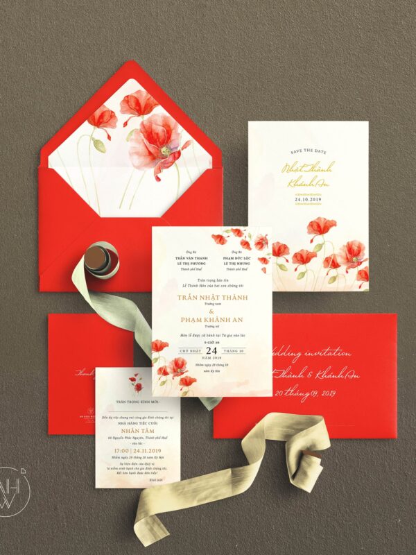 Thiệp cưới hoa màu nước | Phong bì đỏ
