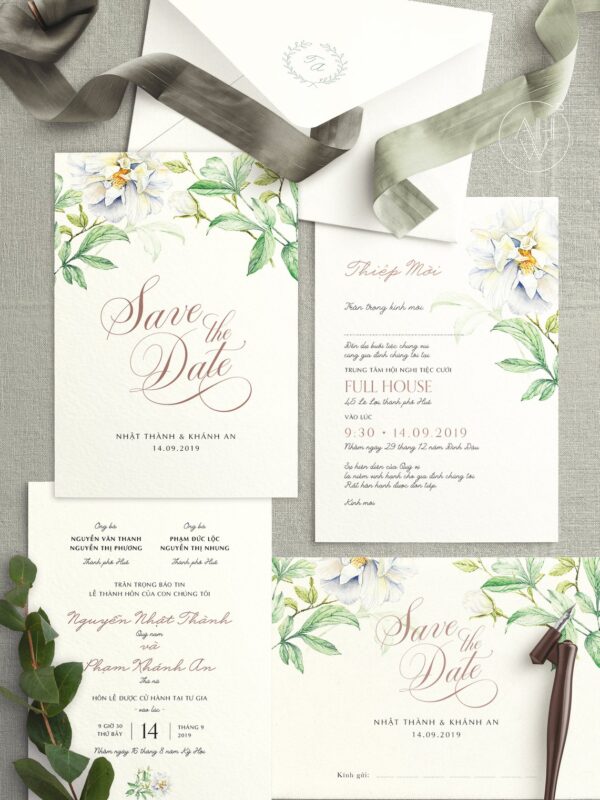 Thiệp cưới Cành Lá | Phong bì Trắng đơn giản