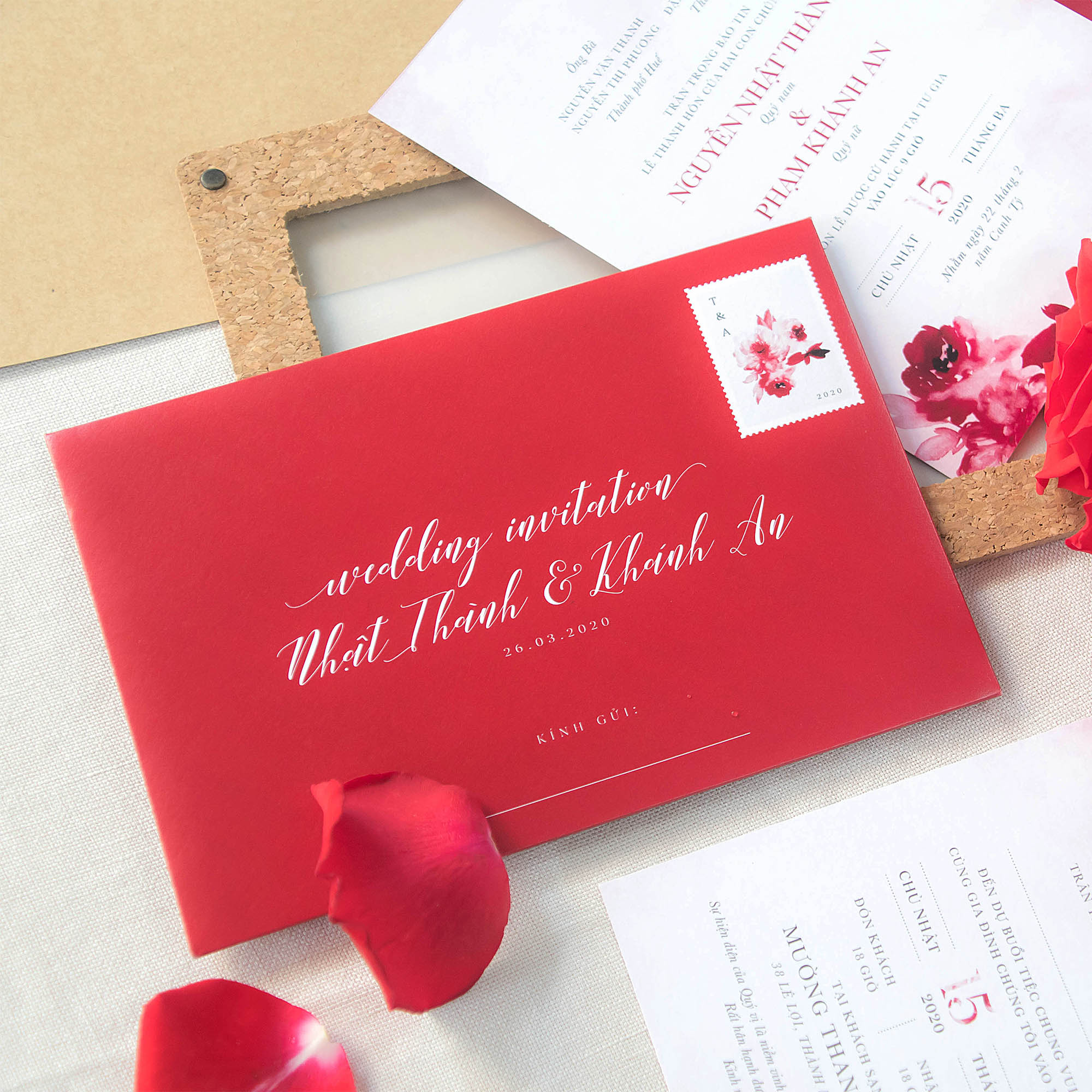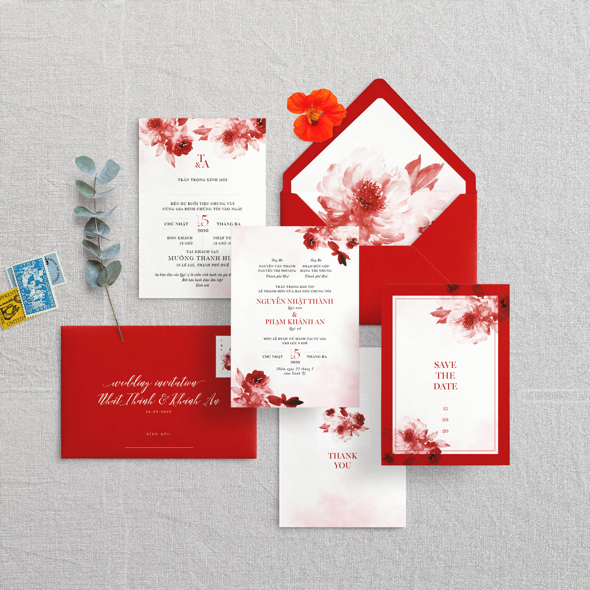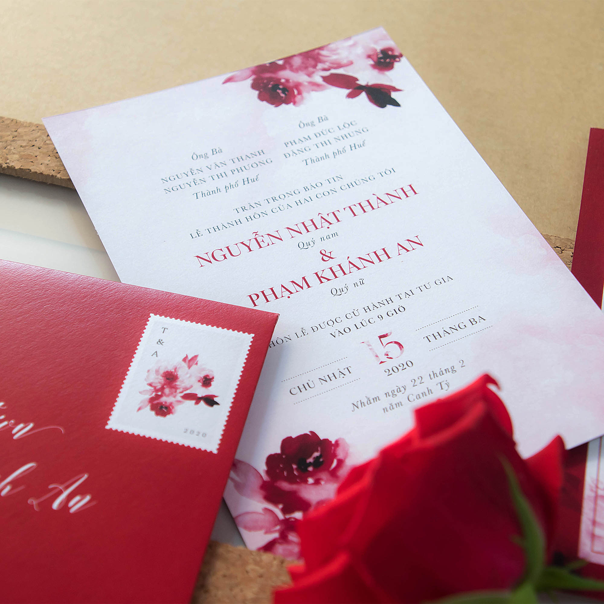 Thiệp cưới hoa màu nước | Phong bì đỏ