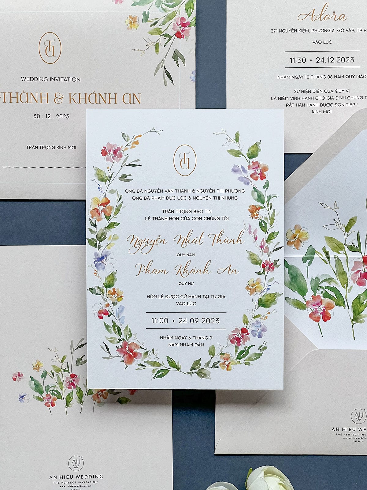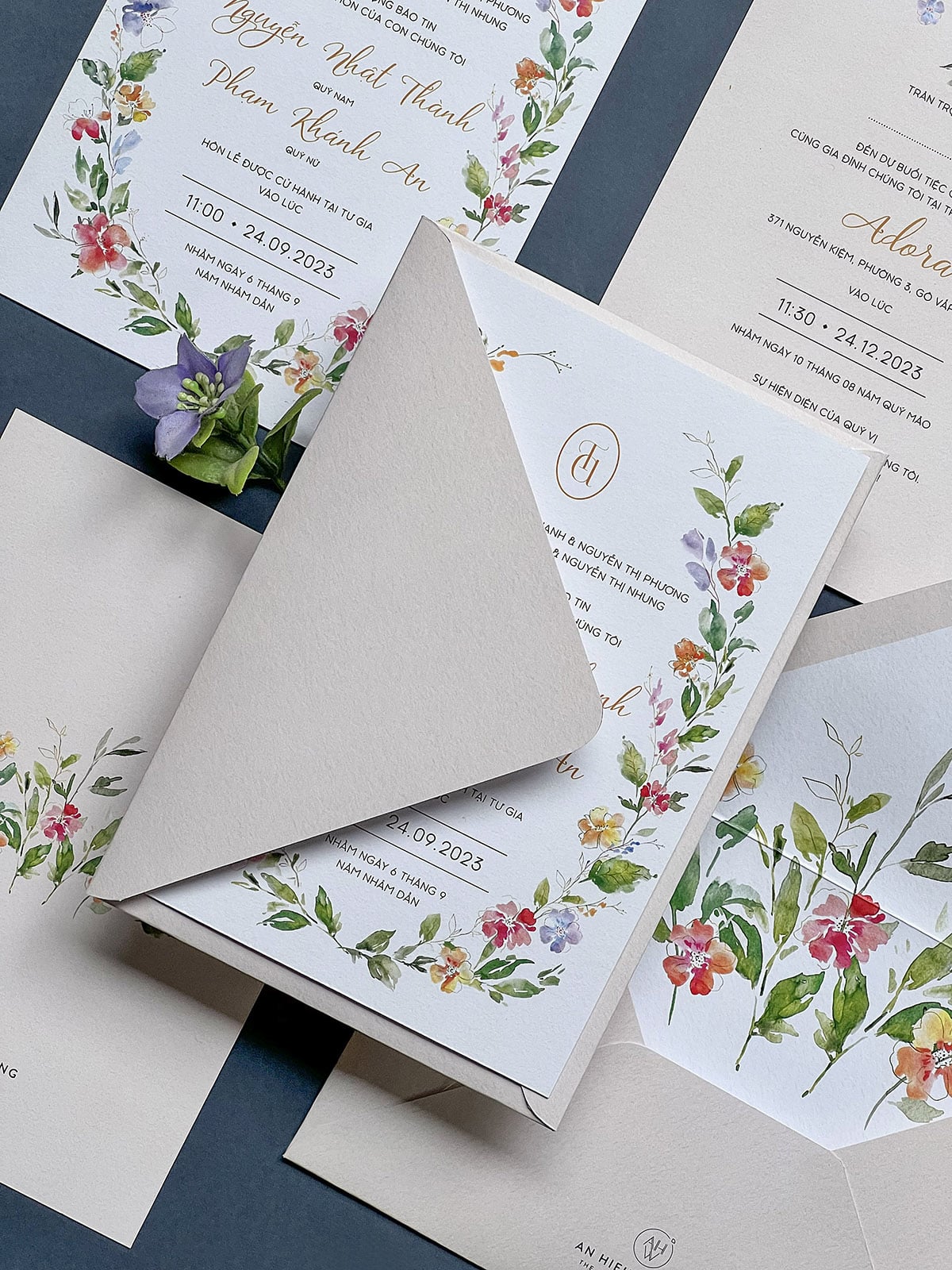 Nếu bạn đam mê vẻ đẹp của những bông hoa màu nước, bộ thiệp cưới hoa màu nước sẽ là sự lựa chọn hoàn hảo cho đám cưới của hai bạn!