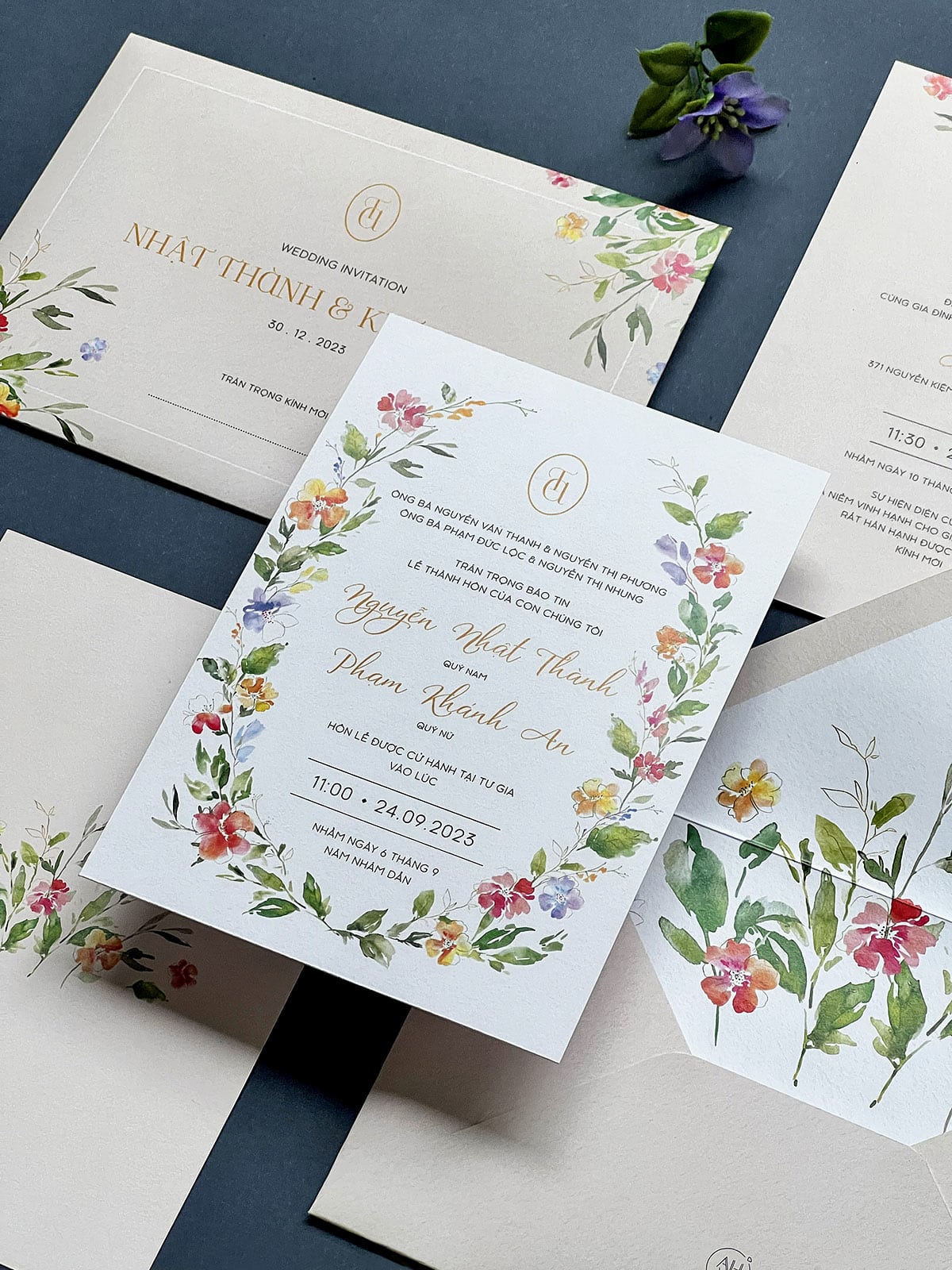 Thiệp Cưới Hoa Màu Nước Vẻ Đẹp Của Sự Tinh Tế.
